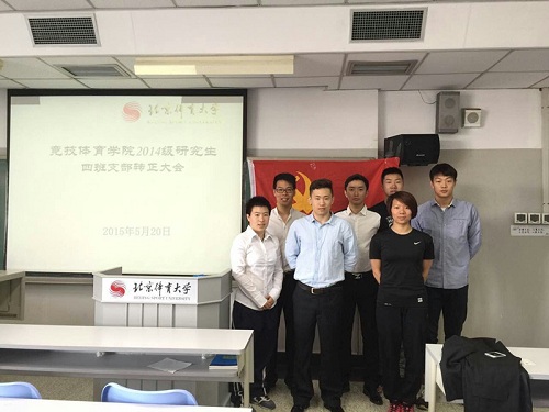 竞技体育学院2014级研究生4班党支部于2015年5月20号上午10点在501教室召开党员大会。我支部严格按照预备党员转正程序,通过讨论、票决的方式,顺利将待转正同志吸纳为中国共产党的一员。