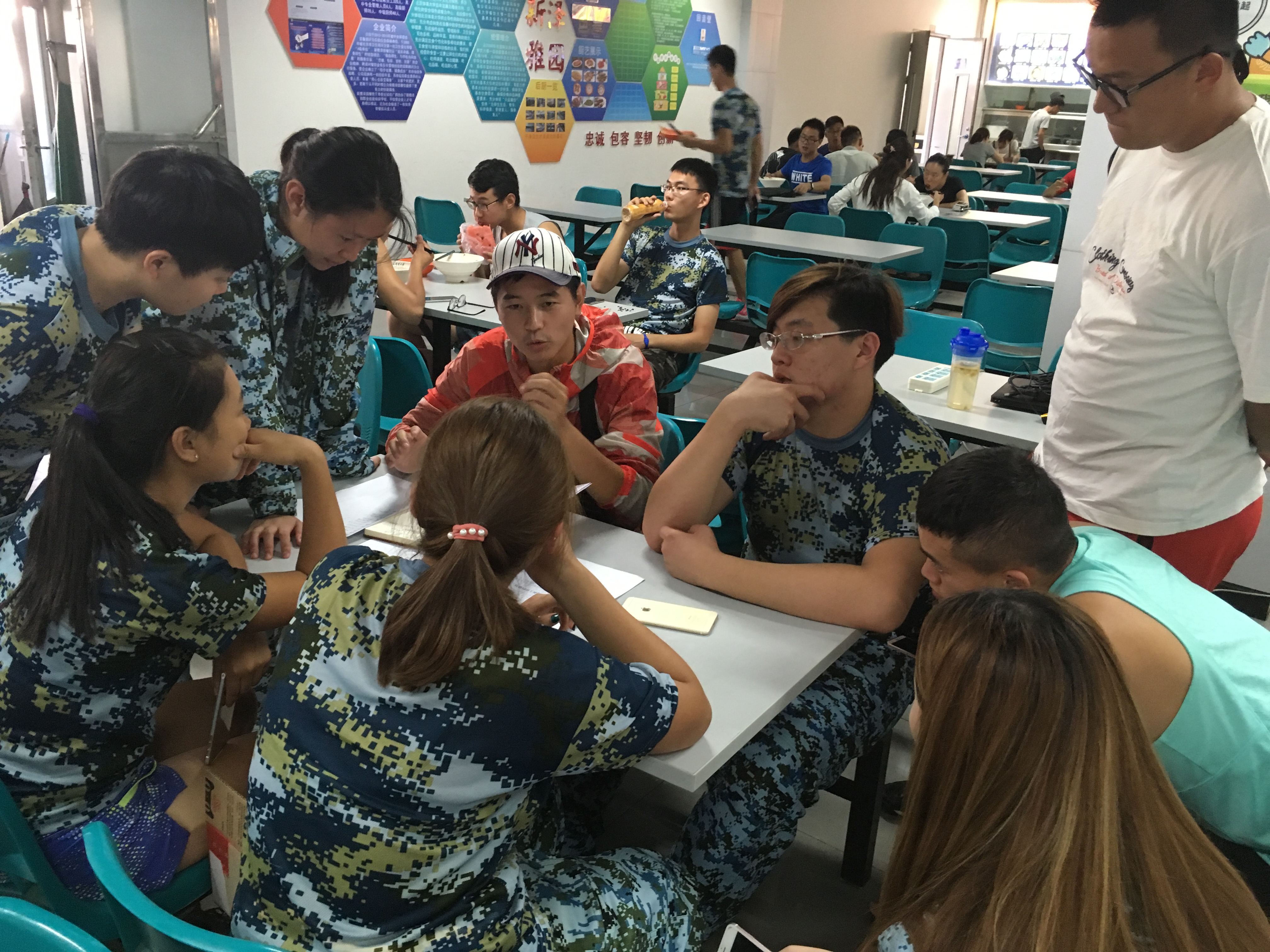 军训结束后年级党支部书记张怀川老师在午休时间,组织了各连队的临时团员负责人,在食堂对上午的第一节军训单元进行了梳理,发现并解决问题。同时对各军训连队临时团员负责人在军训期间提出了明确要求,布置了相关任务,力求更快更好地建立起一个完整完善的连队团支部。对于每位成员来说,认真对待这次的工作既是对老师同学负责,也是对自己自身的一次锻炼和提高。