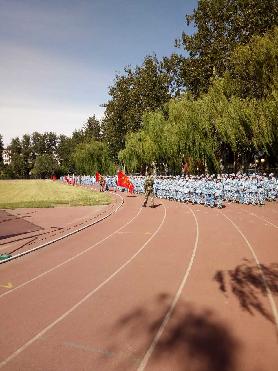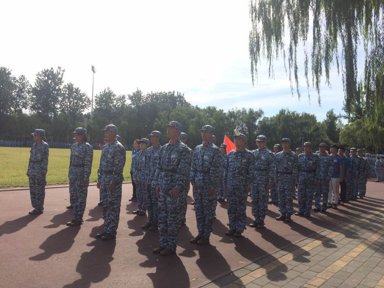 今天是2016年9月10日,是国际教师节日。同时也是北京体育大学竞技体育学院本科新生军训的第一天。迎着破晓的微光,辅导员李健老师、张怀川老师同我们一起迎来了进入大学的第一节课。今天军训的内容主要包括立正、稍息、跨立立正、停止间转法等。虽然操场上的阳光无比毒辣,烈日晒黑了我们的皮肤,但阳光越是强烈我们的心变得越是坚强。